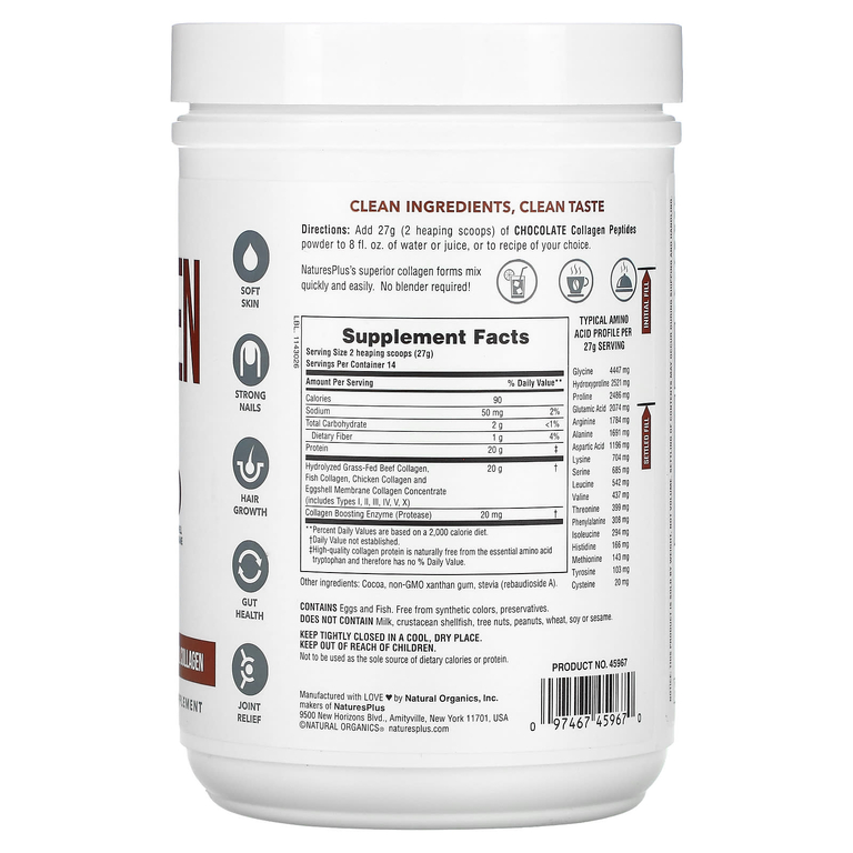 ‡ Высококачественный коллаген не содержит незаменимой аминокислоты триптофана и поэтому не имеет процентной суточной нормы.
