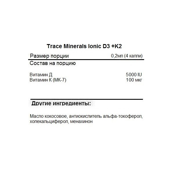 Ionic D3 + K2 (витамин D, K2) 59 мл (Trace Minerals) — купить в Москве недорого в интернет-магазине PitProfi.com