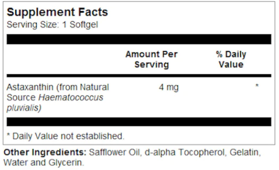 Astaxanthin (Астаксантин) 4 мг 60 гелевых капсул (Solaray)