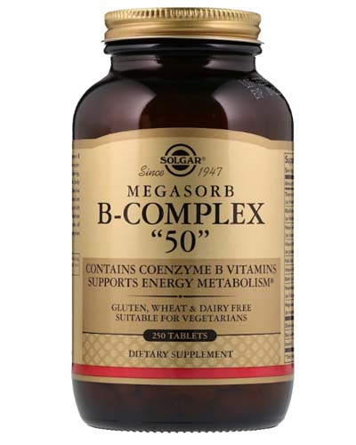 Megasorb B-Complex 50 Solgar – это передовой комплекс от одного из топ мировых брендов, который содержит полный спектр витаминов B-группы с повышенными дозировками. Добавка играет важную роль для поддержания здоровья и функций ЦНС, защиты нервных тканей от стресса, лечения и профилактики большинства психических расстройств. Группа B оказывает выраженное влияние на здоровье кожи, иммунитет, когнитивные функции, работу сердца, сосуды и процесс кроветворения, а также синтез важнейших ферментов и других полезных веществ.